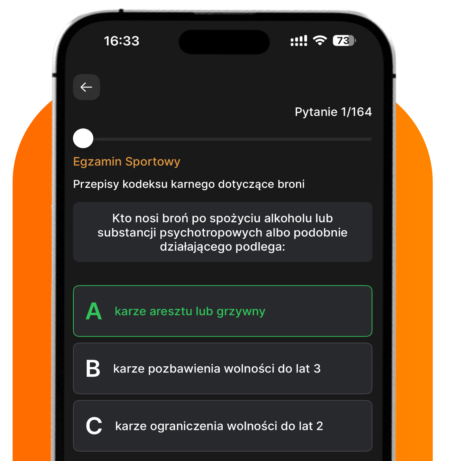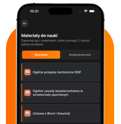 Pobierz Kompas Strzelecki z Google Play lub App Store, załóż darmowe konto i ucz się kiedy tylko chcesz. Trenuj na oficjalnych pytaniach, zdaj egzamin (patent strzelecki PZSS lub kolekcjonerski i dopuszczenia do posiadania broni KWP) za pierwszym strzałem i zdobądź pozwolenie na broń!